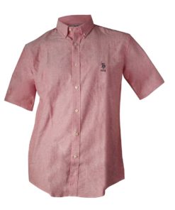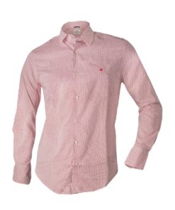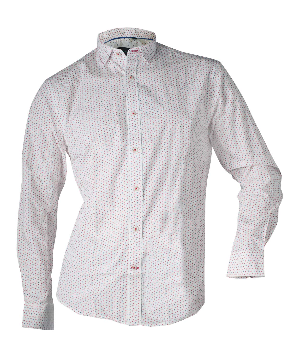 Camisa manga larga de entallada, con blanca con textura prints roja.